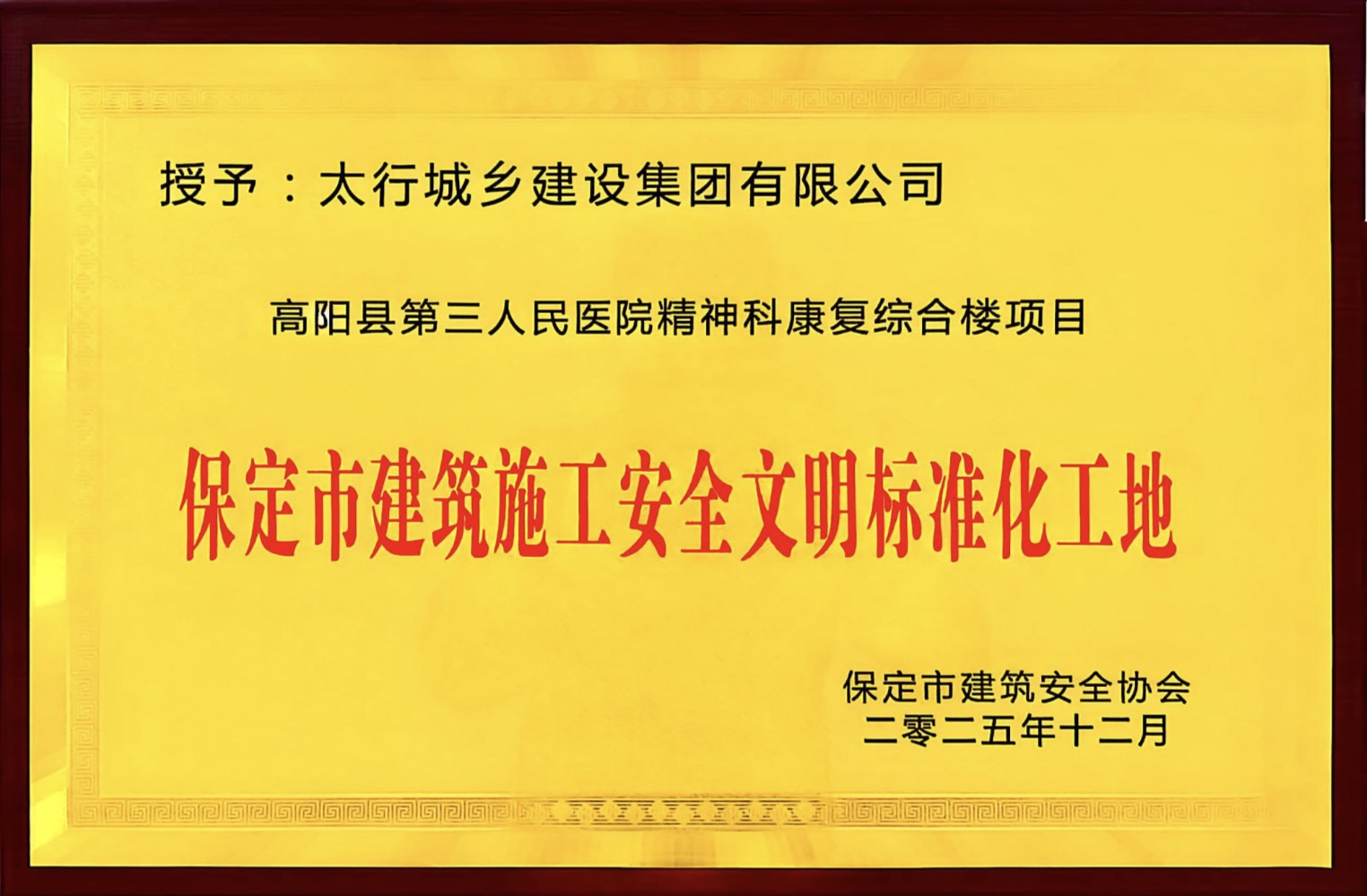 高阳县第三人民医院项目获评保定市安全文明工地