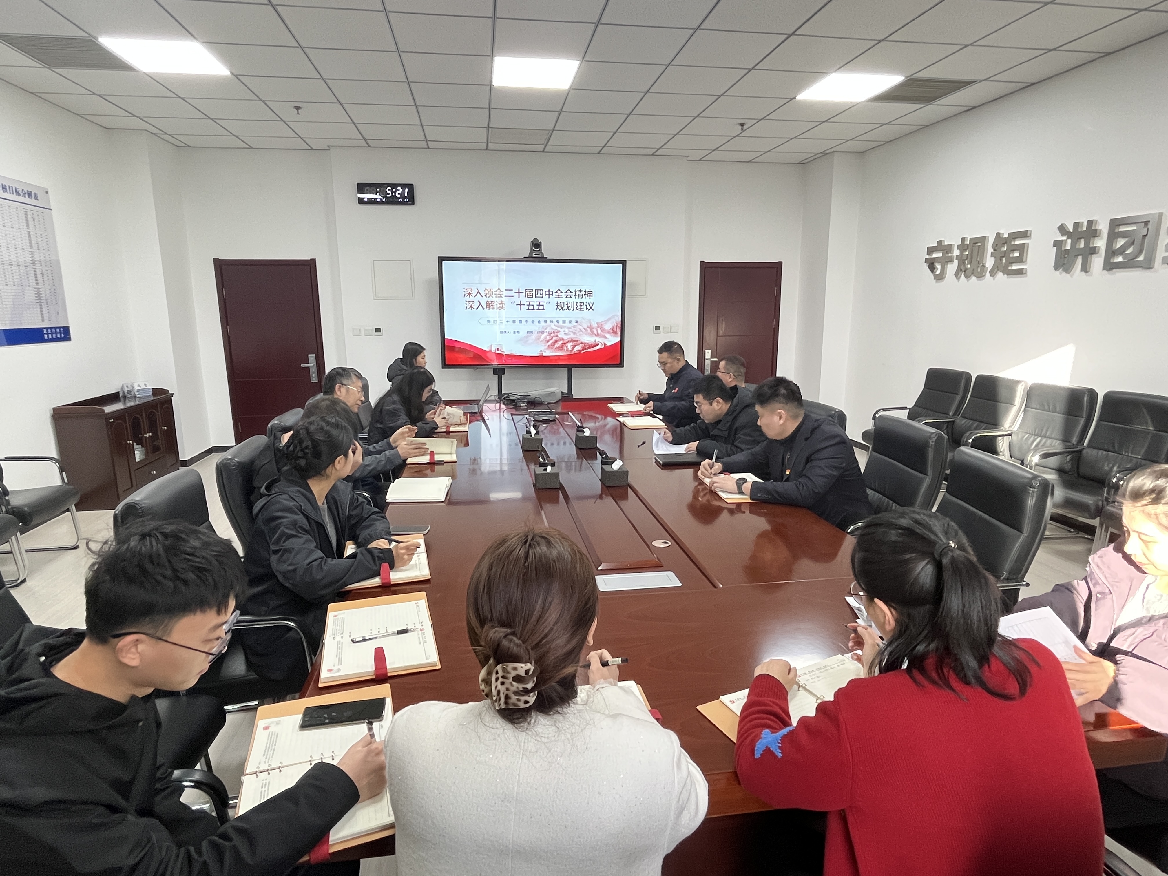 | 为深入学习领会党的二十届四中全会精神,全面贯彻全会决策部署和工作要求,12月30日,建筑公司党支部组织召开学习贯彻党的二十届四中全会精神宣讲会暨专题党课。公司全体党员参加会议,党支部书记、董事、经理王飞主持会议。会上,党支部组织委员张锐敏领学《河北省学习贯彻党的二十届四中全会精神宣讲提纲》,系统传达... |